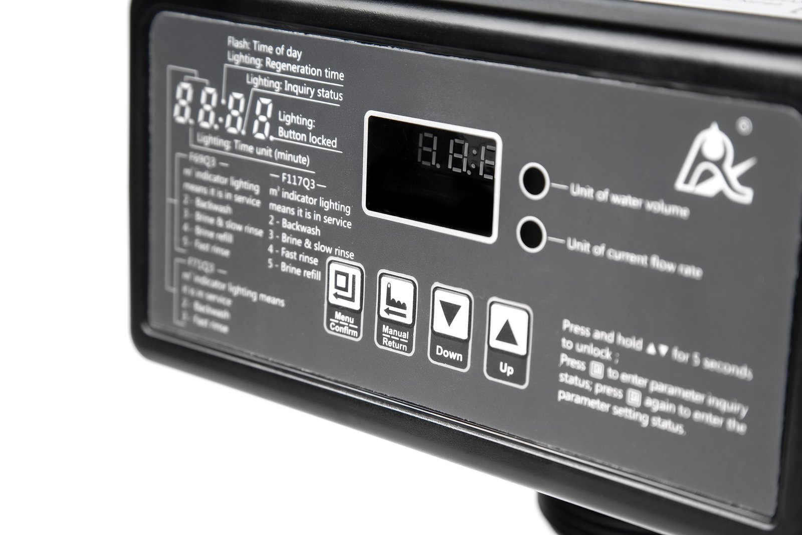 Блок управления ручной реагентный для умягчителей. Предназначен для коммутации потоков воды внутри корпуса скорого фильтра с зернистой загрузкой.