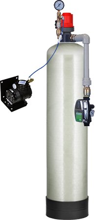 В системе происходит насыщение обрабатываемой воды воздухом с помощью воздушного компрессора, окисление железа и органических соединений. Интенсивная аэрация воды способствует защите водоочистного оборудования от развития микроорганизмов на загрузке фильтров, что приводит к продлению срока службы каталитических фильтрующих материалов.