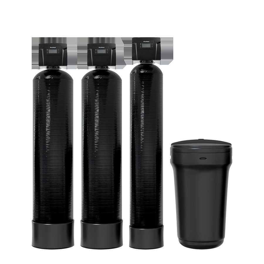В состав оборудования входит: латунный грязевой фильтр, бесшумная аэрационная колонна типа Oxidizer, автоматический безреагентный фильтр-обезжелезиватель, автоматический фильтр-умягчитель с баком для соли, регулятор жёсткости воды, манометры, термочехлы, все необходимые фильтрующие загрузки.