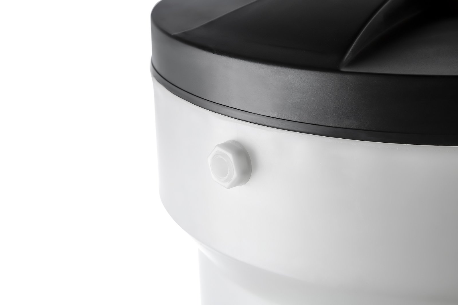 Баки для регенерирующих растворов (соль, перманганат калия) изготавливают из полиэтилена. В состав материала, из которого изготовлен бак, как правило, включают ингибиторы ультрафиолета, что повышает их стойкость к солнечному свету. Баки поставляются в комплекте с литыми крышками, собранными системами забора регенеранта и придонными решетками (фальшдно). Износостойкие полимерные материалы и новейшие производственные технологии обеспечивают их надежную эксплуатацию.