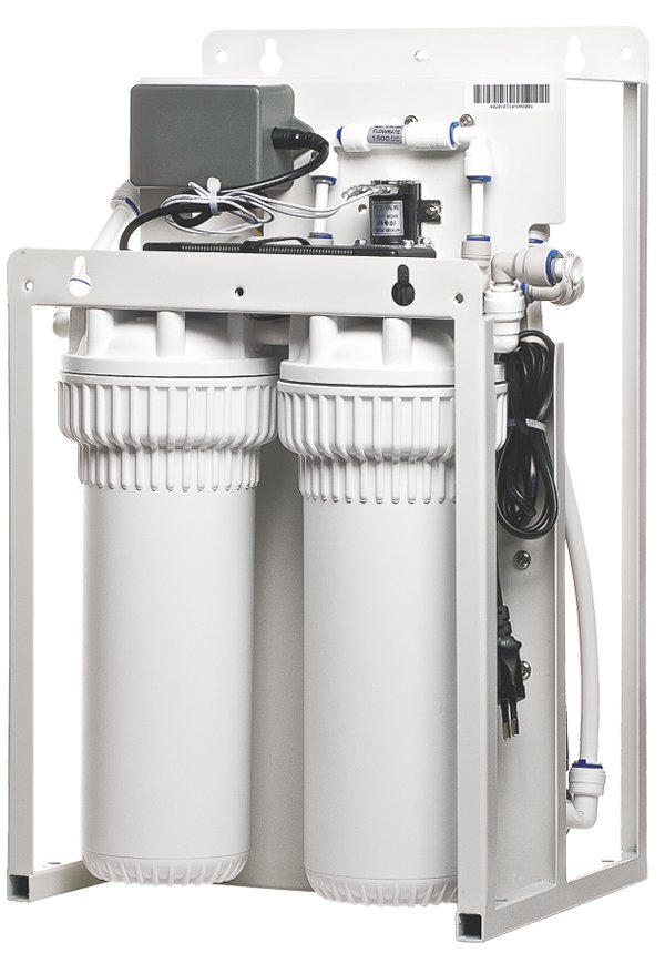 Установка обратного осмоса WiseWater серии WWRO-400 обеспечивает максимально качественную очистку воды. Производительность системы - до 1500 л/сутки (400GPD). Система включает в себя повысительный насос с блоком питания, две стадии предочистки (седимент и ГАК), один мембранный элемент и картридж финальной очистки. Установка имеет рамную конструкцию и максимально компактна.