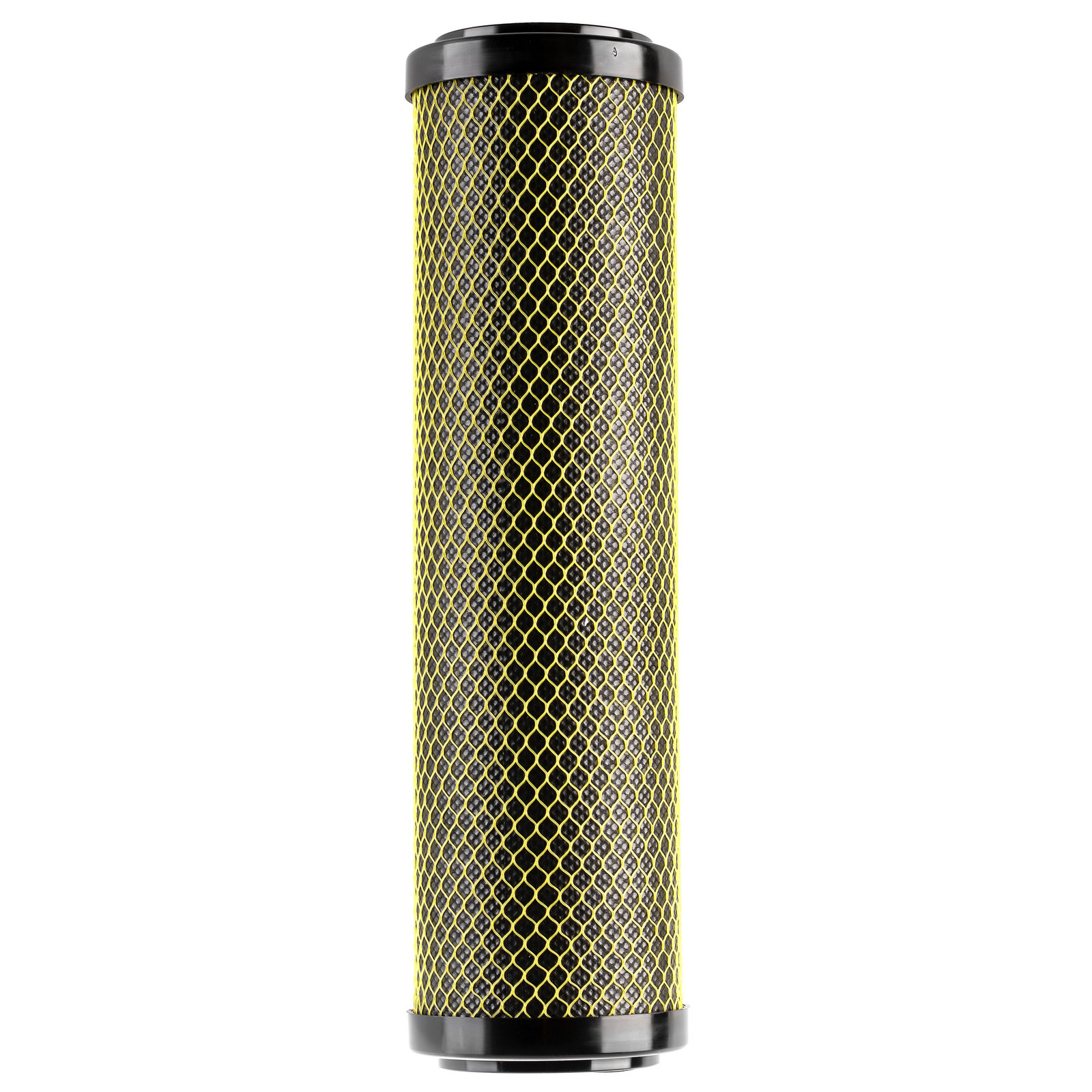 - Содержит высококачественный активированный уголь, изготовленный из скорлупы кокосового ореха по технологии MIX BLOCK с добавлением материала КАТАЛОН. Это – волокнистый ионообменный материал нового поколения (патент № 2013114497), обеспечивает эффективную очистку воды от всех видов железа и тяжелых металлов, сохраняя природную минерализацию;