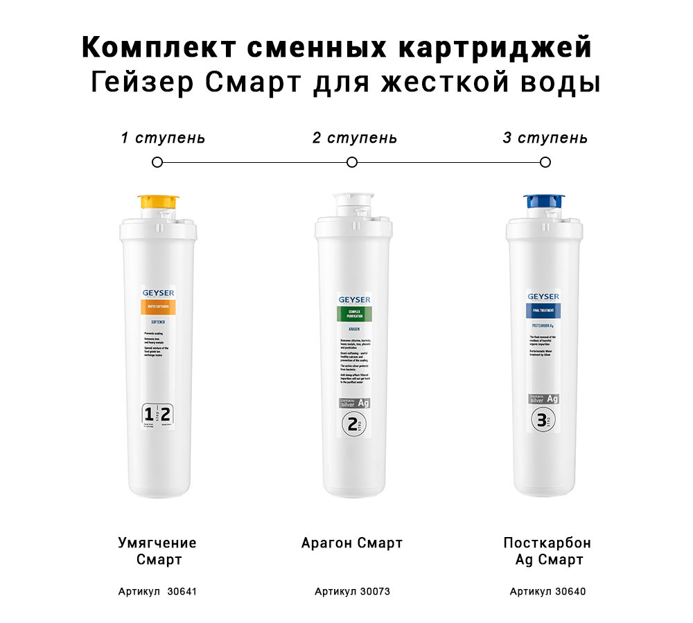 Предлагаем Вам купить комплект картриджей Гейзер Смарт для жесткой воды по выгодной цене 3 290 . Мы очень тщательно следим за качеством реализуемой продукции и отдаем предпочтение только проверенным производителям.