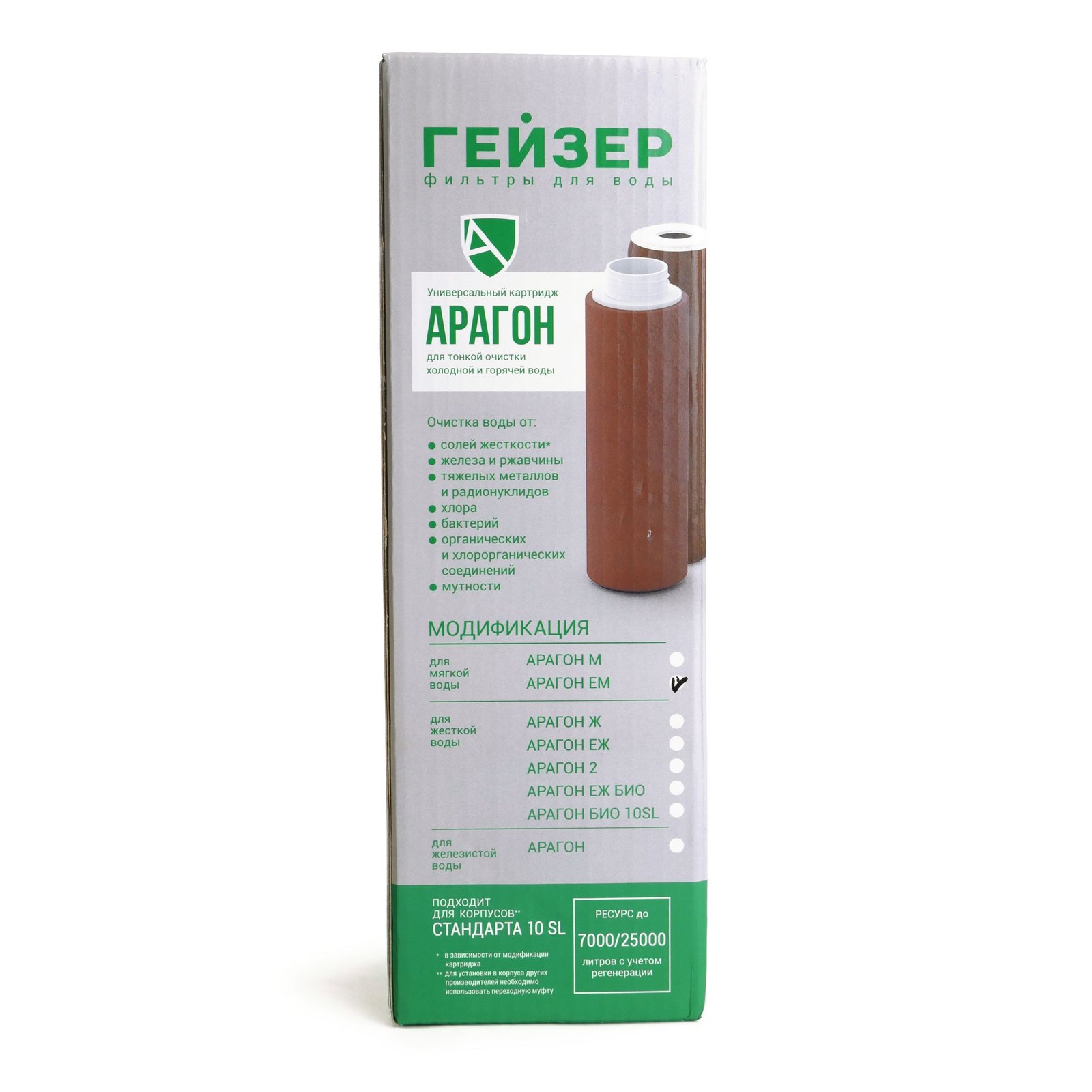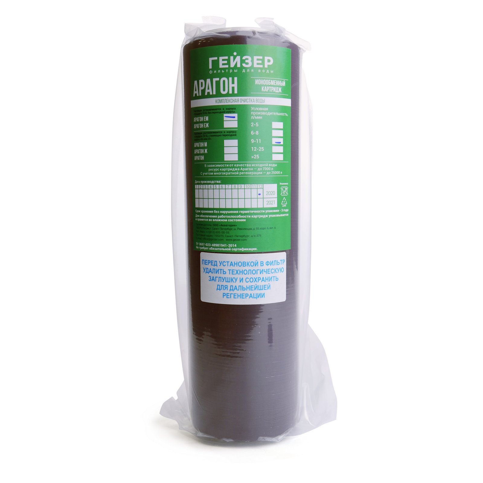 Арагон-ЕМ – картридж из материала Арагон, разработанный для очистки мягкой воды. Имеет 3 уровня фильтрации (механический, ионообменный и сорбционный). Внутрь картриджа Арагон-ЕМ можно установить минерализатор В(Ca), обогащающий воду полезным кальцием.