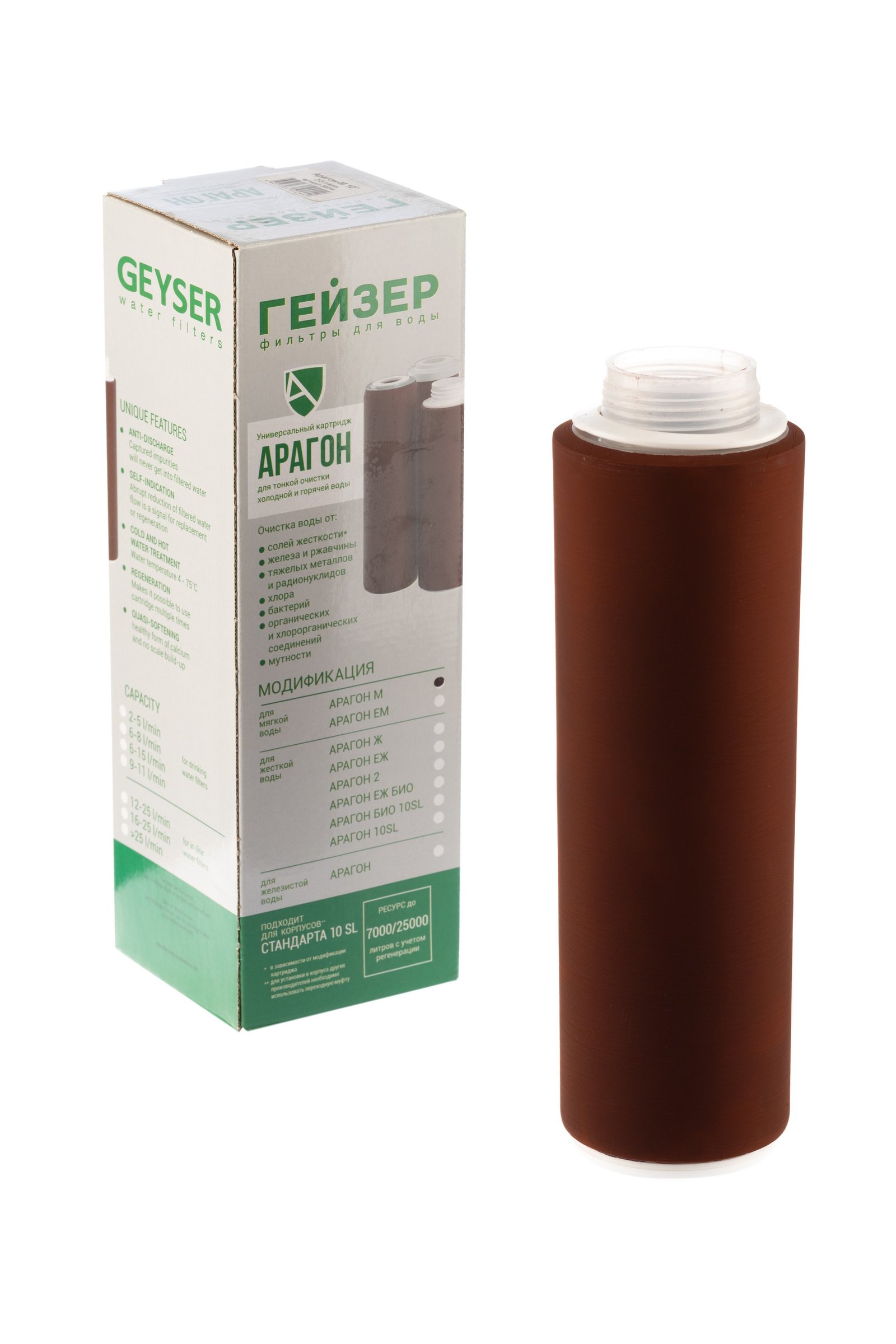 Картридж Арагон-М применяется в бытовом фильтре Гейзер 3 ИВ Люкс для комплексной очистки воды с низким уровнем минерализации.