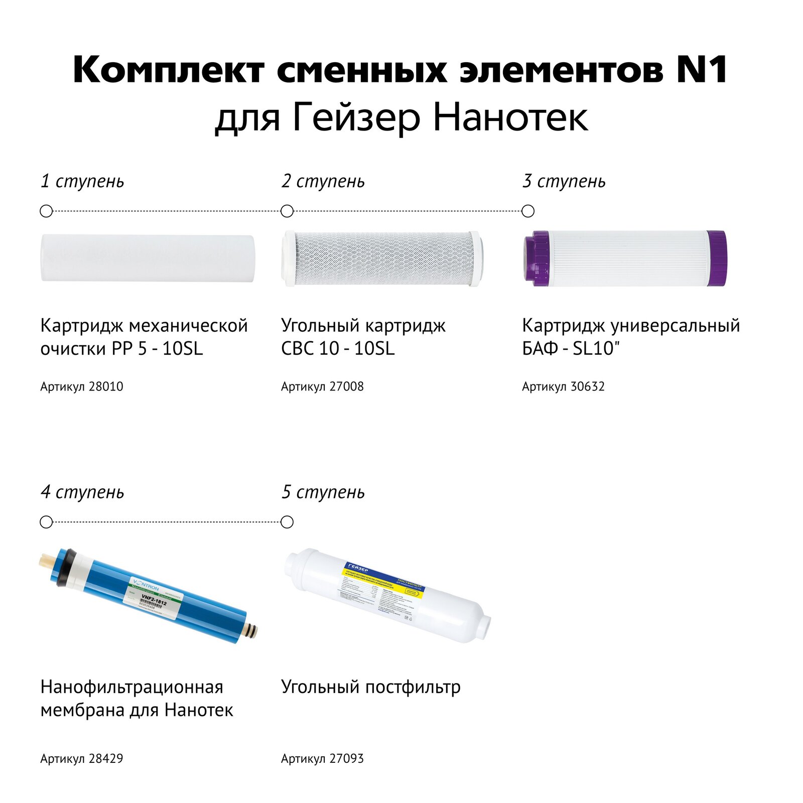 Комплект сменных элементов N1 для Гейзер Нанотек