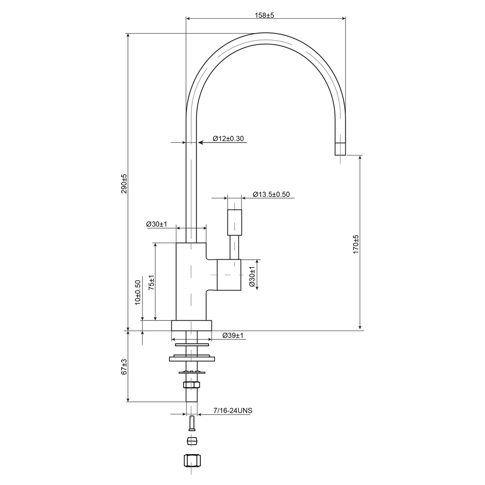 Кран имеет большой диаметр излива, что позволяет его использовать в мойках большого объема. Кран изготовлен из современных экологически безопасных материалов с нанесением особо прочного хромированного покрытия и рассчитан на работу с холодной водой. Кран устанавливается на мойку или столешницу в любом удобном для эксплуатации месте.