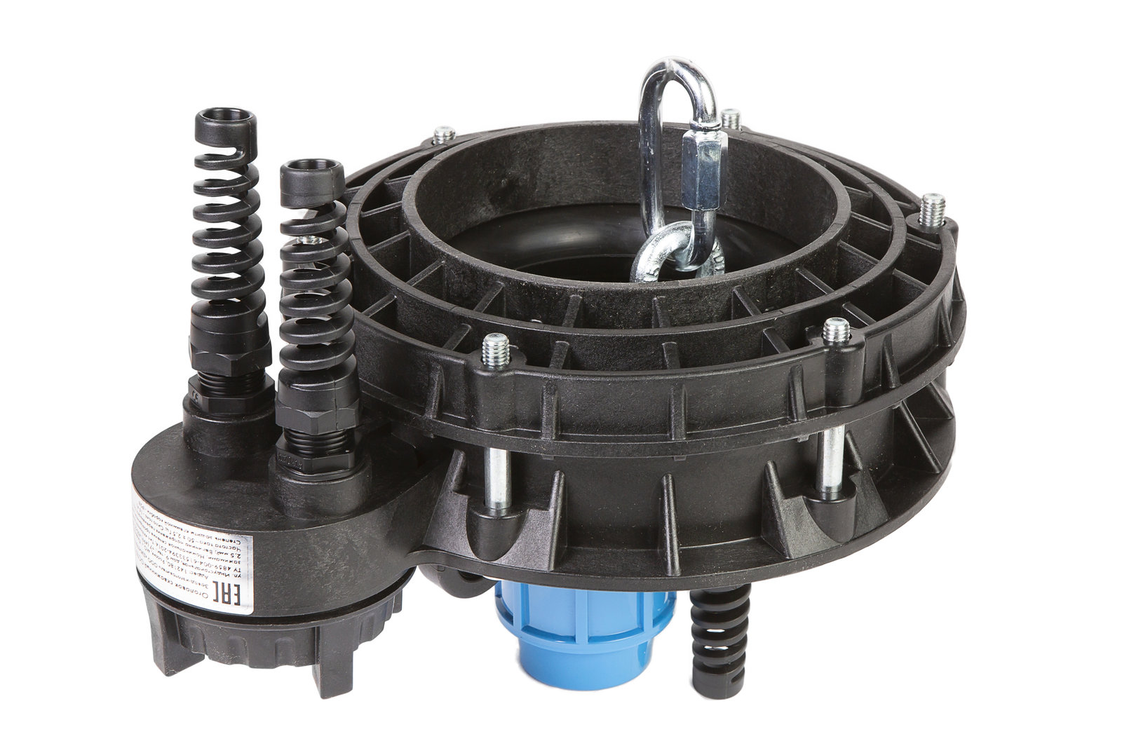 Предназначен для герметизации устья скважины с наружным диаметром обсадной трубы от 110 до 130 мм. Предохранит скважину от попадания в неё поверхностных, грунтовых вод и посторонних предметов. Позволяет увеличить дебит неглубоких скважин за счет образующегося разрежения между оголовком и понижающимся в процессе работы насоса уровнем воды. Изготовлен из высокопрочного пластика. Повышает надежность подвешивания насоса. Упрощает эксплуатацию технического колодца. Оголовок, с базовой (стационарной) частью крепится на обсадной трубе один раз за весь период эксплуатации оголовка. На базовую часть, в свою очередь, устанавливается съемная крышка, через которую проходят электрокабель и напорная труба. Такие оголовки позволяют производить простое, многократное соединение/разъединение электрокабеля в клеммной коробке при извлечении насоса из скважины. Рассчитан на подвешивание груза до 200 кг.