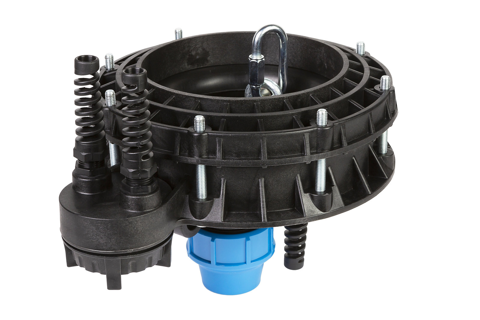 Предназначен для герметизации устья скважины с наружным диаметром обсадной трубы от 130 до 140 мм. Предохранит скважину от попадания в неё поверхностных, грунтовых вод и посторонних предметов. Позволяет увеличить дебит неглубоких скважин за счет образующегося разрежения между оголовком и понижающимся в процессе работы насоса уровнем воды. Изготовлен из высокопрочного пластика. Повышает надежность подвешивания насоса. Упрощает эксплуатацию технического колодца. Оголовок, с базовой (стационарной) частью крепится на обсадной трубе один раз за весь период эксплуатации оголовка. На базовую часть, в свою очередь, устанавливается съемная крышка, через которую проходят электрокабель и напорная труба. Такие оголовки позволяют производить простое, многократное соединение/разъединение электрокабеля в клеммной коробке при извлечении насоса из скважины. Рассчитан на подвешивание груза до 200 кг.